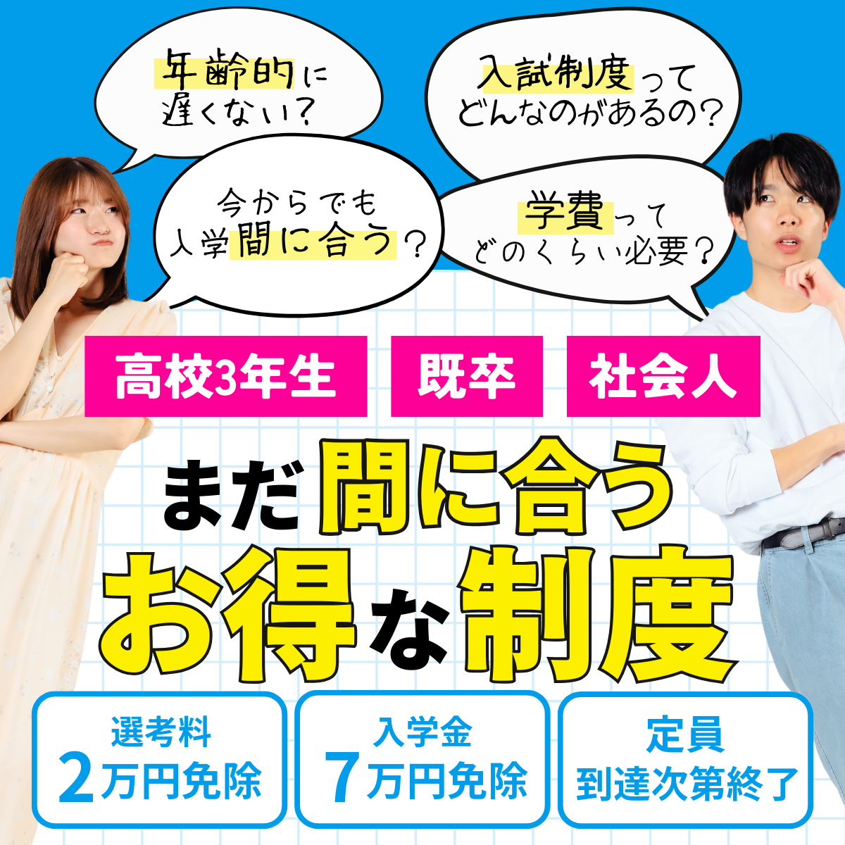 入学金・選考料が免除に!進路変更・学び直しを応援する制度まとめ【在校生インタビュー付き】