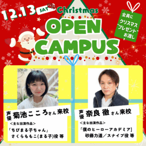 【プロ声優来校決定🌟】人気アニメ出演のプロ声優から直接学べる!12/13(土)開催オープンキャンパス!無料送迎バス運行🚌