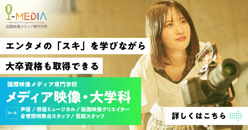 i-MEDIAには、“大学卒業資格”を目指せる「メディア映像大学科があります。