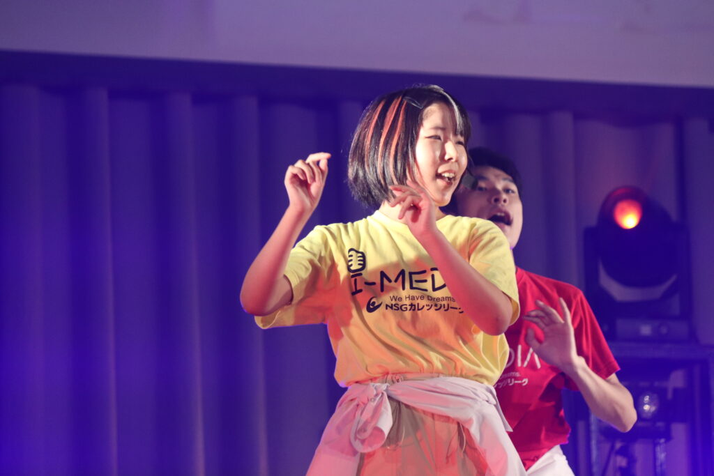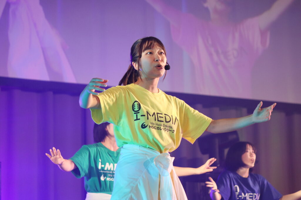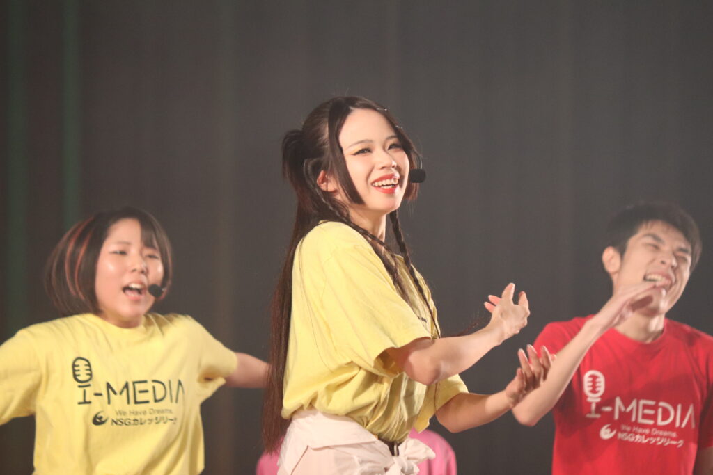 ステージでは、i-MEDIAの学生たち(俳優・ミュージカル科&声優科アーティストコース)によるダンスパフォーマンスや音楽ライブなどを開催!さらに、当日の会場MCは声優科の学生が担当。明るく元気な進行で、イベントをさらに盛り上げてくれました🎙️