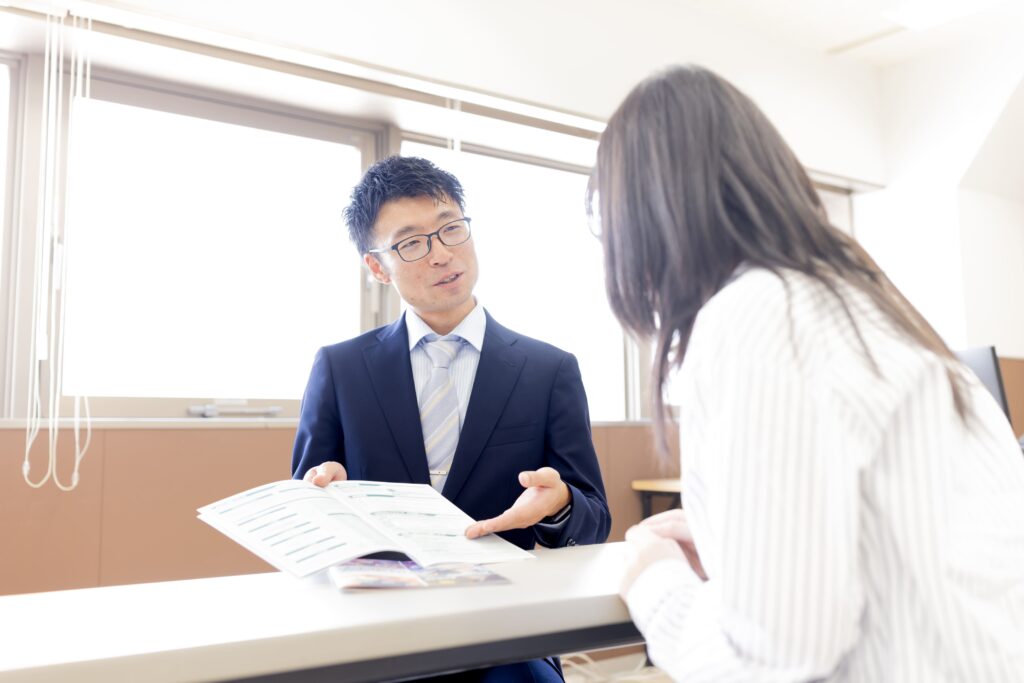参加者全員でi-MEDIAの学費担当のスタッフから説明を聞きます。