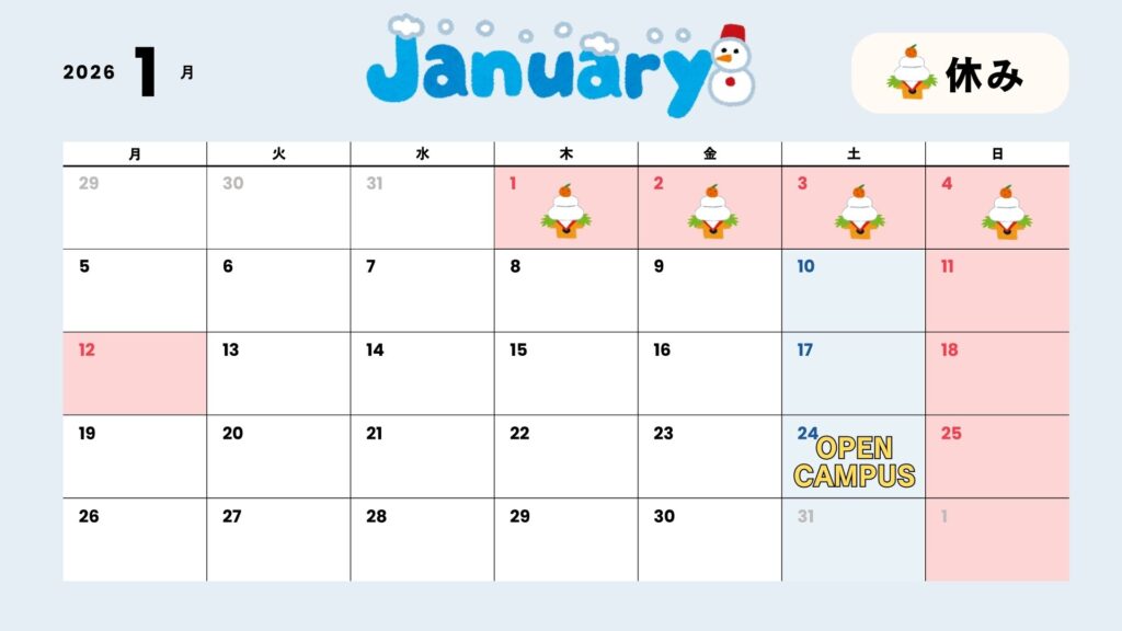 国際映像メディア専門学校では12/20~1/4を休校日とさせていただきます。