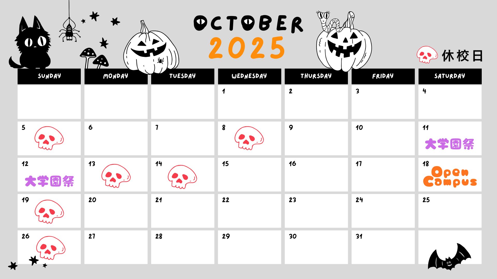 10月休校日のお知らせ